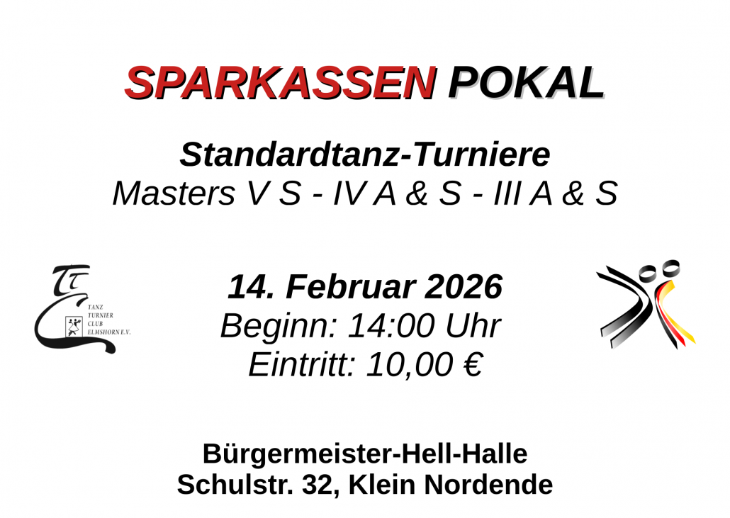 | 12.09.26 | GLM (Gemeinsame Landesmeisterschaften im Standardtanzen von 5 Verbänden) | Bürgermeister-Hell-Halle |
