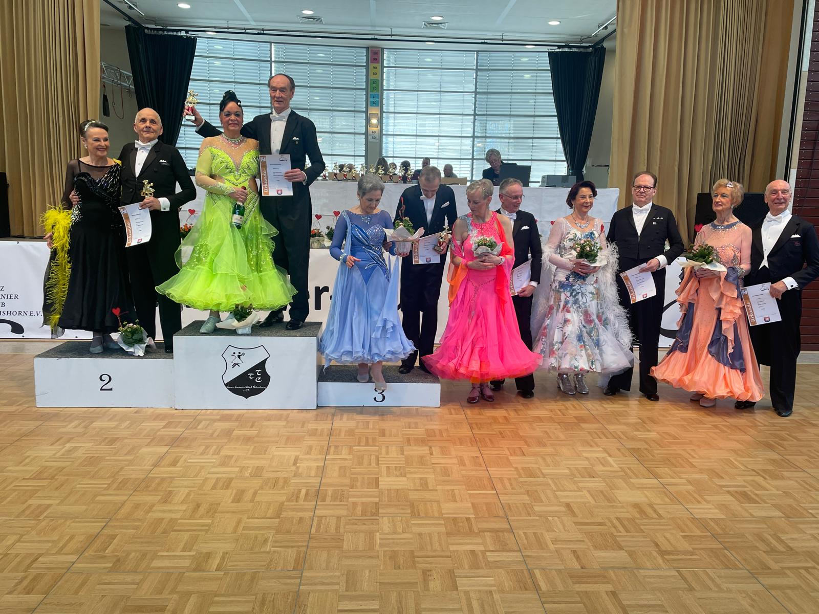 Vier Paare vom TTC gingen an den Start und kamen alle in ihrer jeweiligen Gruppe in die Endrunde. Die Ehepaare Brandes und Gilles ertanzten sich jeweils Platz 6 und die Ehepaare Wolf und Brüning kamen auf Platz fünf. In der V S gewannen Axel und Sabine Hagemeister aus Berlin. Dieser Sieg war ihr 150ster Sieg in der Sen. S.👍🥂